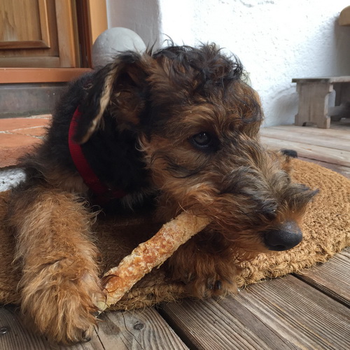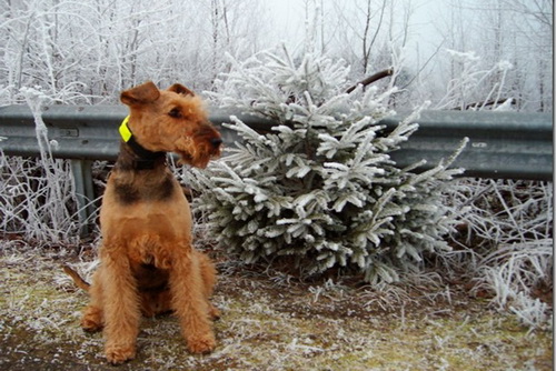 "... Sie war zum ersten Mal mit uns auf Reisen ... sie hat sich sehr, sehr vorbildlich benommen. Als ob sie zeigen wollte, daß sie ein Airedale von Welt ist! ..."
