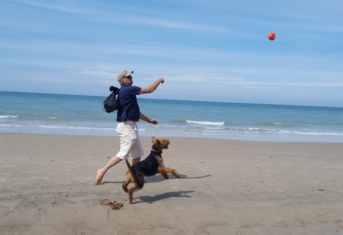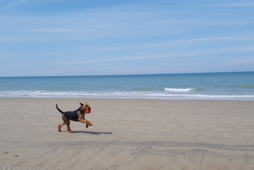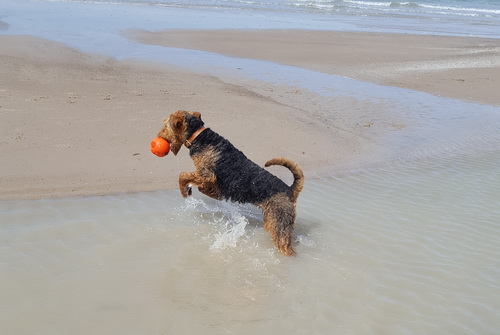 "... Unser wasserscheuer Terrier genießt den Freilauf am Strand und kann dabei sogar ins Wasser gehen, Auch den neuen Fahrradanhänger konnten wir ohne Probleme einführen. Ein Superhund! ..."