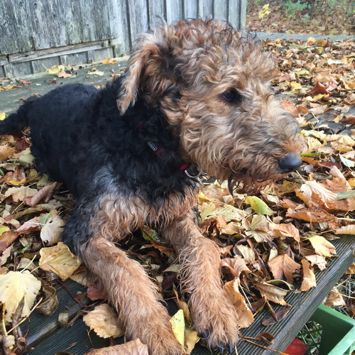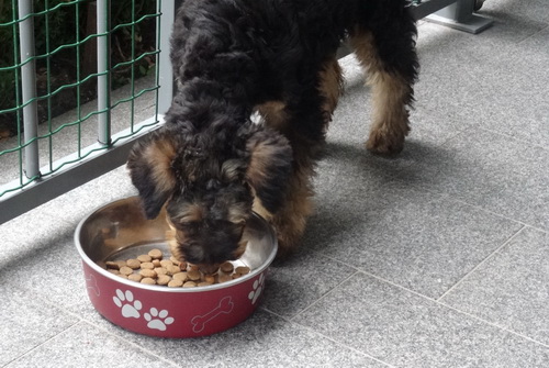 "Mein doofes Herrchen zieht die Diät-Anweisung nun knallhart durch. Selbst Oma und Opa wurden angewiesen! Mal schauen wieviel ich bis zu unserem nächsten Trimm-Termin abgespeckt habe. LG, Frieda P.S. Leider hat es dieses Jahr kaum Äpfel im Garten. Noch nicht einmal das gibt's zum knabbern. Das ist vielleicht ein Hundeleben..."