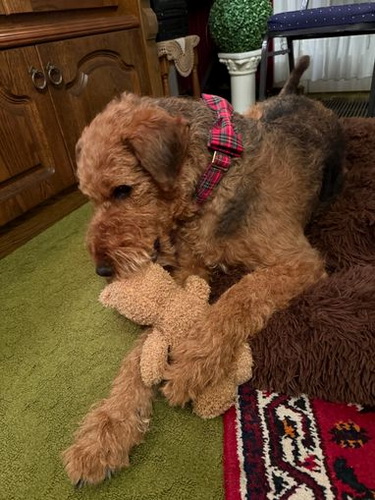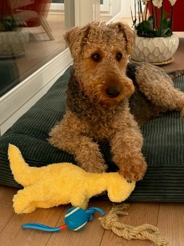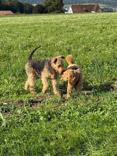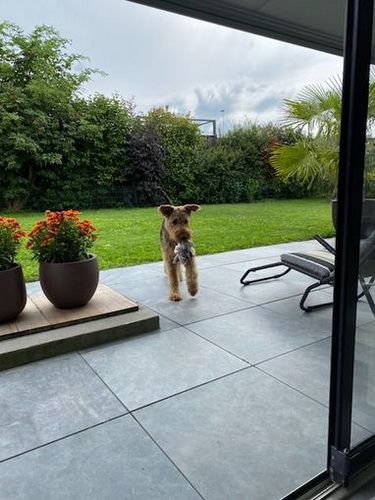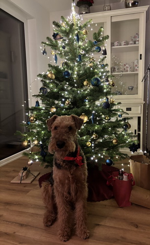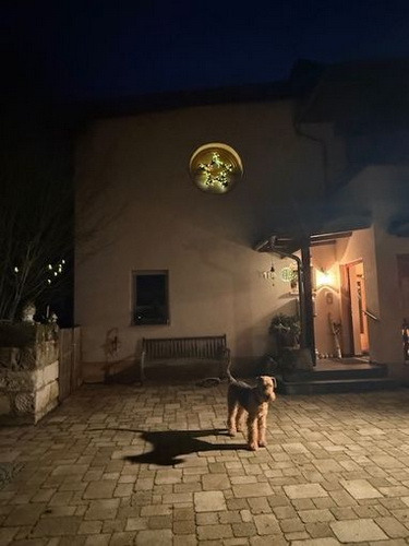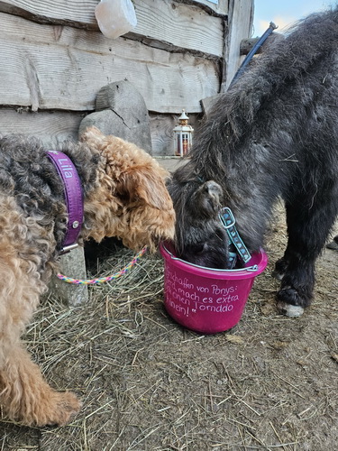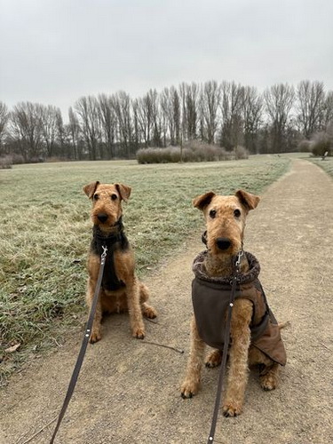 "Ivy geht es gerade recht gut und sie tobt tatsächlich ab und an noch mit dem vierjährigen Theo durch den Garten. Sie ist mit ihren 12 1/2 Jahren natürlich eine echte Oma, läuft aber noch stramm 1 1/2 Stunden mit durch die Kälte und ist gerade auch recht „ wach“. Sie hört gar nichts mehr, sieht wenig, aber meine Handzeichen sieht sie noch ( auch wenn sie ab und an ignoriert werden😉). Natürlich schläft sie viel, besteht aber jeden Tag pünktlich auf ihrem großen Spaziergang und auch das Futter wird nach der Uhr korrekt eingefordert. Insgesamt hat ihr der junge Theo, der ja viel „ Pfeffer im Hintern“ hat, gut getan, denke ich. "