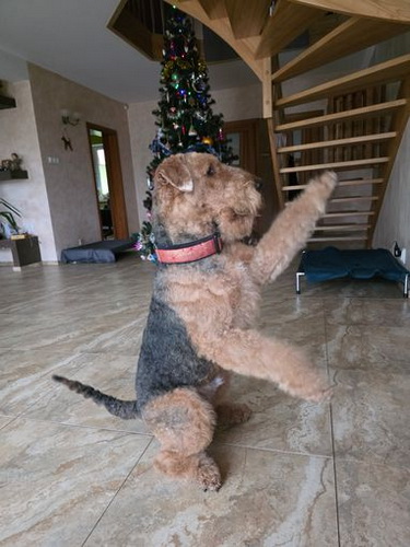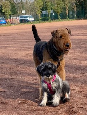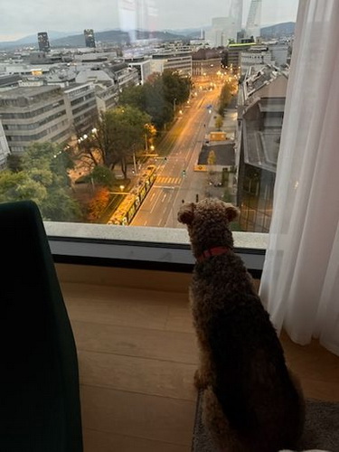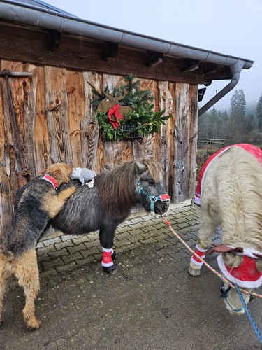 "Freddy ist topfit und entwickelt immer neue Marotten, er geht nicht in Richtung Alter, der wird immer welpiger... Kessy hat Herrchen fest um ihre Pfötchen gewickelt. Sie hat etliche Namen bei uns: Teufelin, Sünderin, Diebin - die letzte Ladung Vanillekipferl hat sie noch warm vom Blech geklaut... Sie sind schon ein cooles Paar, die zwei..."