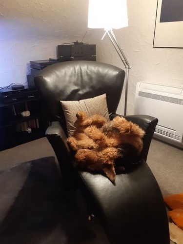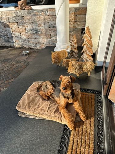 "Nevada hat sofort mit lautem Gebell die Wellen am Strand vertrieben. In der Ferienwohnung angekommen, hat sie ihren Stammplatz eingenommen. Von dort hat sie einen super Ausblick auf den "Katzenhügel""