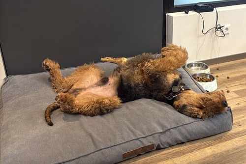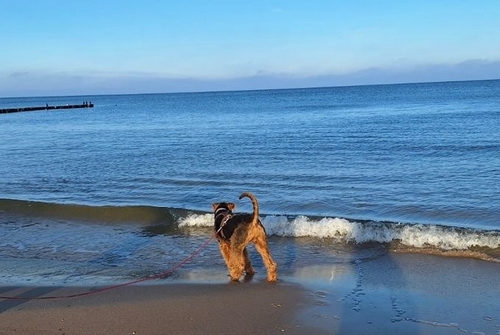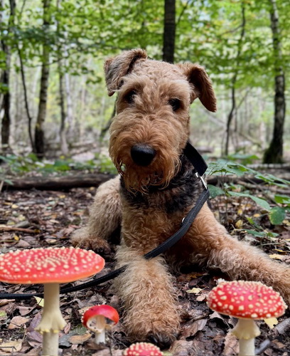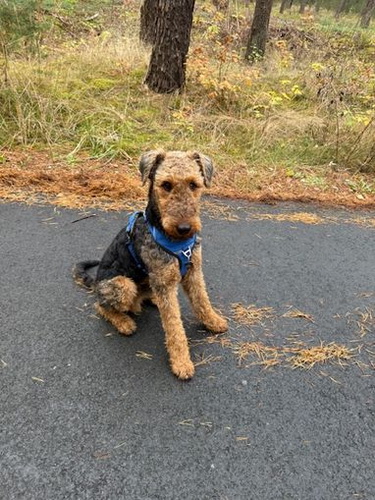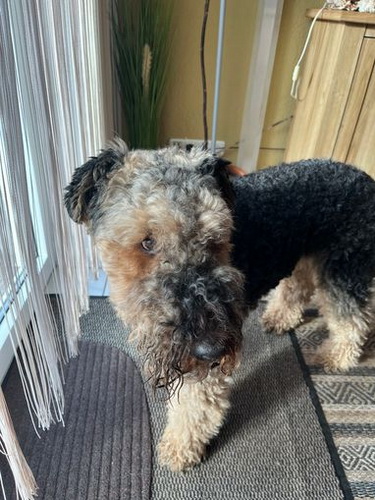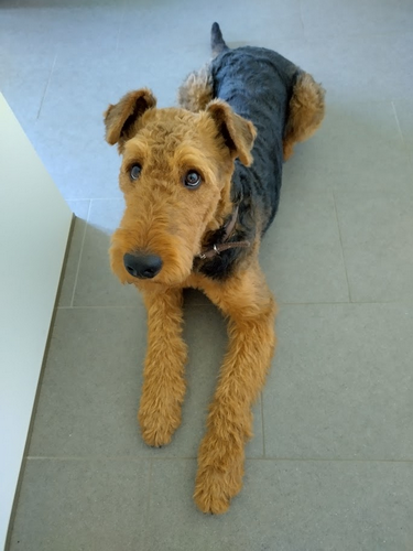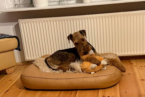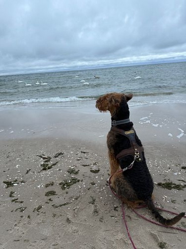 "Emmy macht sich prima, sie macht uns viel Freude!Sie ist ein liebes munteres Airedalemädchen..."