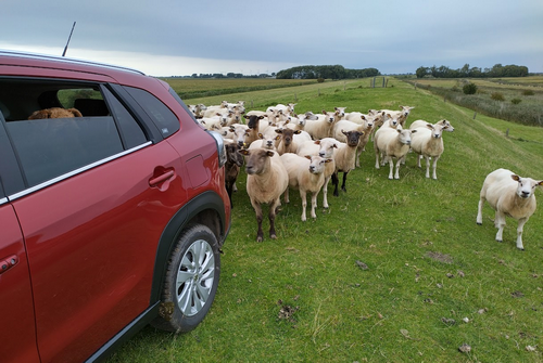Die Nordsee. - Schafe nur gucken, nicht jagen... Naß und stürmisch. Und morgen soll's auf dem Schiff zu den Seehunden gehen.