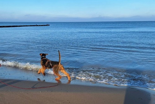 "Enya hat heute mit ihrem niederländischen Verehrer herrlich gespielt. Sie ist total von dem Strand begeistert. Hier kann man super Löcher graben und durch den Wind hört man gar nicht mehr das Frauchen rufen..."