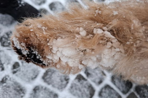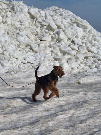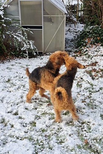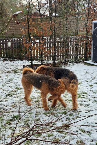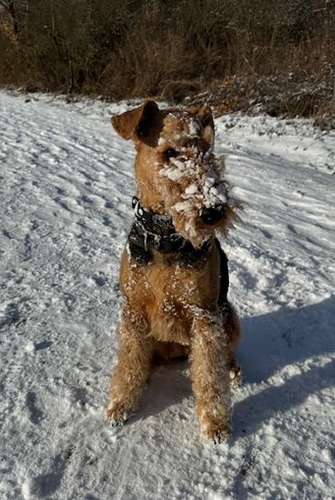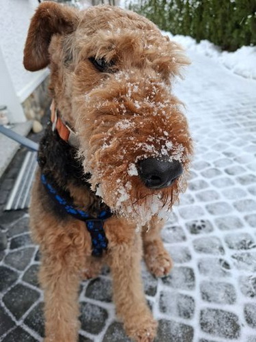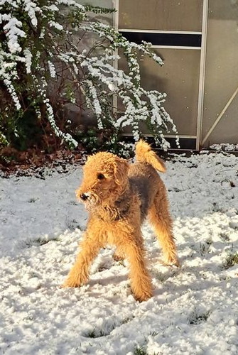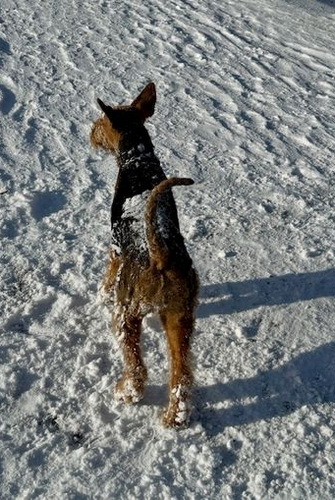 "Ich habe meinen Spaß im und mit dem Schnee. Es ist herrlich, da zu toben und zu rennen. Frauchen kann hinterher sehen, wie sie die Schneebommel aus meinem Fell und von den Pfoten bekommt; das gefällt mir zwar nicht, aber beim nächsten Mal tobe ich wieder durch den weichen schönen Schnee."