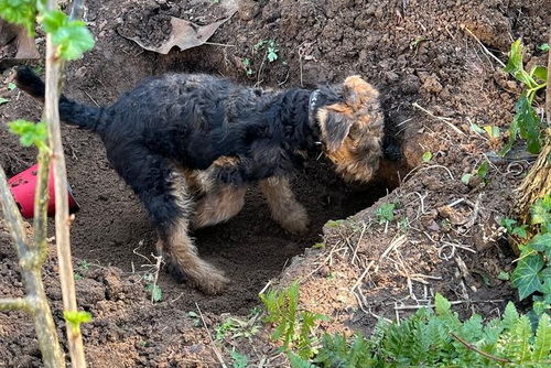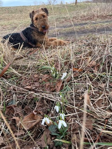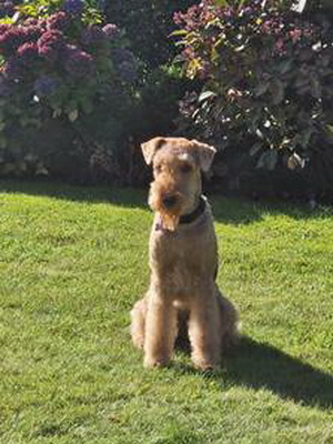 "Finja ist der endgültige Beweis dafür, daß Airedales biologisch der Gattung der Wirbellosen zuzuordnen sind, obwohl sie vom Wesen her Rückgrat zeigen. Außerdem sind sie unentbehrliche Helfer bei der Gartenarbeit."