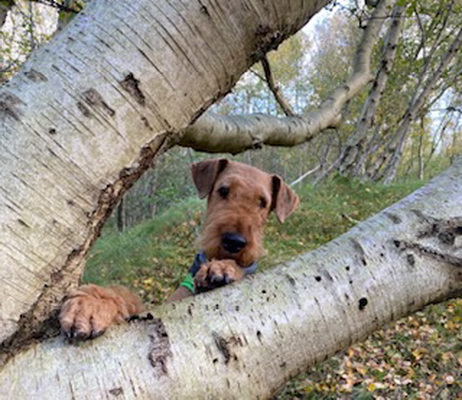 "Silas ist mit seinen 7 1/2 Jahren etwas gelassener geworden und dadurch auch umgänglicher mit seinen Artgenossen. Wir sind immer noch sehr aktiv und haben uns ganz aufs Suchen konzentriert. Dass ist seine Welt und da ist er richtig gut. Ich bin sehr stolz auf ihn."